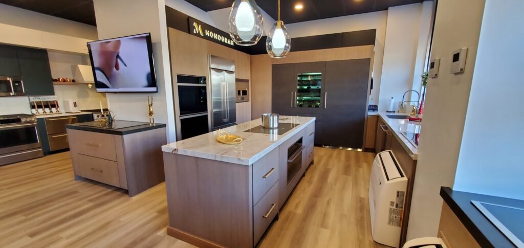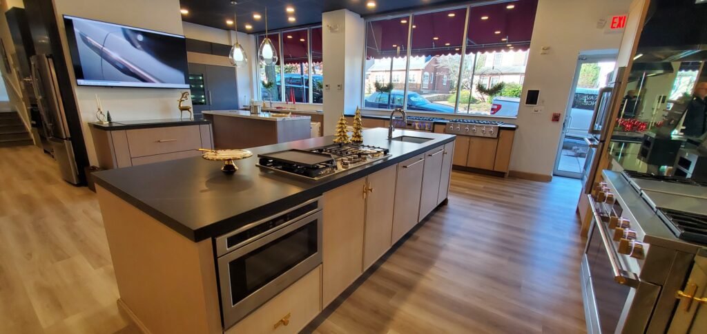 This display kitchen represents how modern design and craftsmanship work together to elevate the heart of every home. With bold cabinetry tones, precision-built details, and luxury appliances, this layout captures what today’s homeowners and designers look for — clean lines, high performance, and timeless appeal.